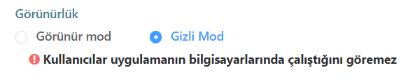 Karşınıza gelen ekranda gizli moda tıklayarak uygulama görünürlüğünü pasif hale getirebilirsiniz.