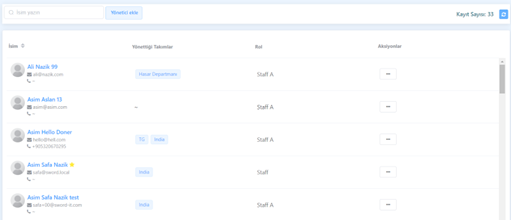 Burada yönetici olarak seçilen çalışanlar, kendisinden başka çalışanların verilerine bakabilen ve aynı zamanda yönetici kısmında da görüntüleme yetkisine sahiptir.