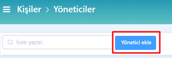 Yönetici eklemek için “Yönetici Ekle” butonu kullanılır. Bu işlem şu adımlarla gerçekleştirebilirsiniz: