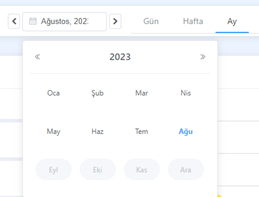 Tarih seçme takviminden “Ay” seçeneğine tıklayarak, geçmiş aylar da dahil olmak üzere istenilen tüm aylar için seçim yapılabilir.