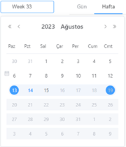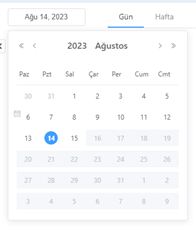 Tarih seçme takviminden “Hafta” seçeneğine tıklayarak, geçmiş haftalar da dahil olmak üzere istenilen tüm haftalar için seçim yapılabilir.