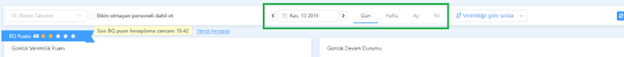 Ofis Paneli, verileri farklı zaman dilimlerinde görüntüleme seçeneği sunar. Ofis Paneli’ndeki araç çubuğu aracılığı ile günlük, haftalık, aylık ve yıllık görünümlerle, çalışanların uzun vadeli performans eğilimlerini anlayabilirsiniz.