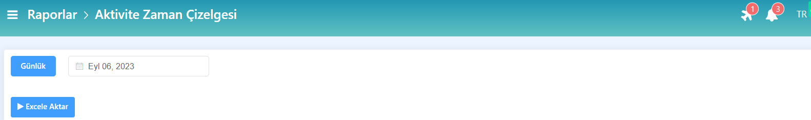 - Rapor oluşturmak için tarih belirleyin ve Excel’e Aktar butonuna basın.